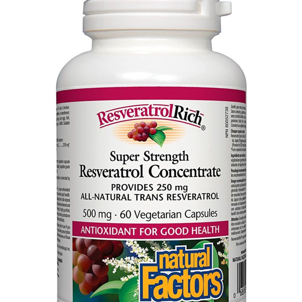 Natural Factors ResveratrolRich Super Strength Resveratrol Concentrate is a high potency compound extracted from the skins of red grapes grown in the Okanagan Valley of British Columbia, and from purified Japanese knotweed. Super antioxidant resveratrol protects against free radical damage to promote healthy aging and overall good health.