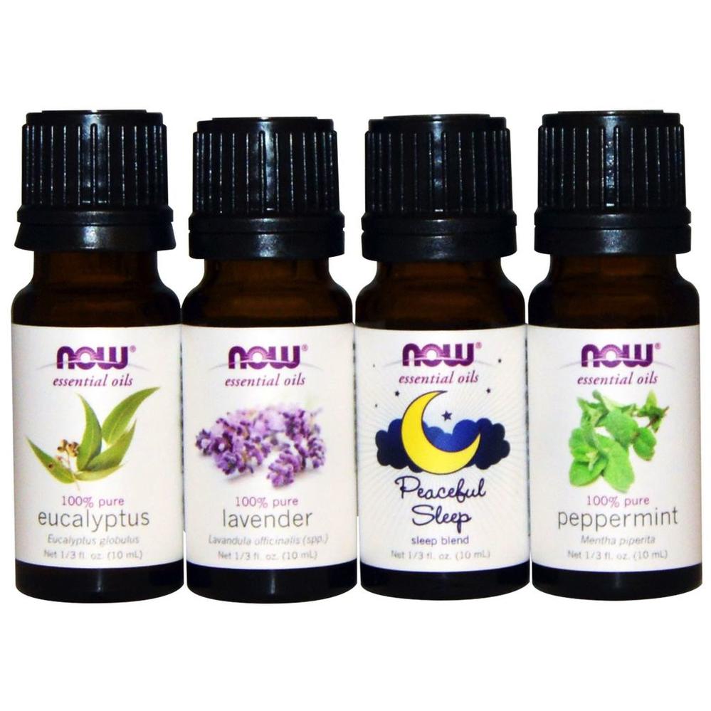 Kit Includes: One 10 mL bottle of each of the following essential oils: Pure Lavender, Pure Peppermint, Pure Eucalyptus and Peaceful Night Blend