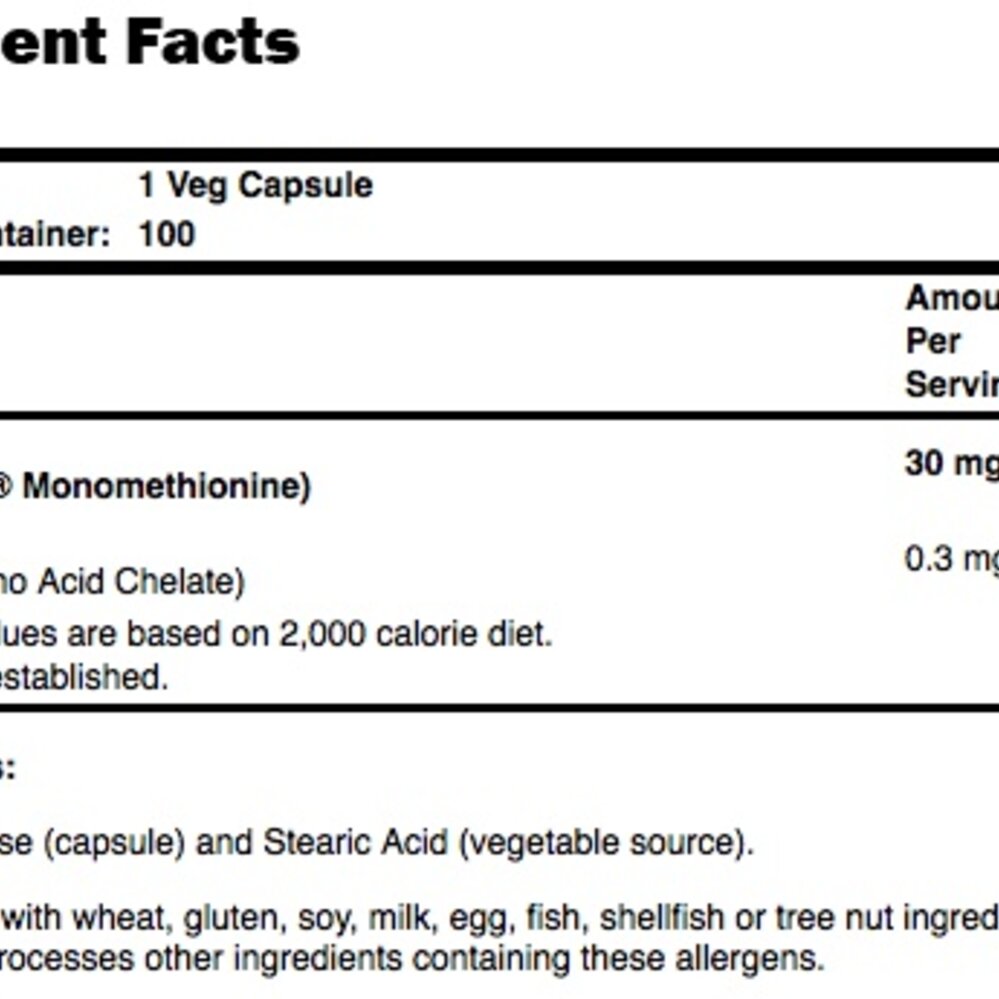 Zinc (from L-OptiZinc®)(Zinc Monomethionine) 30 mg