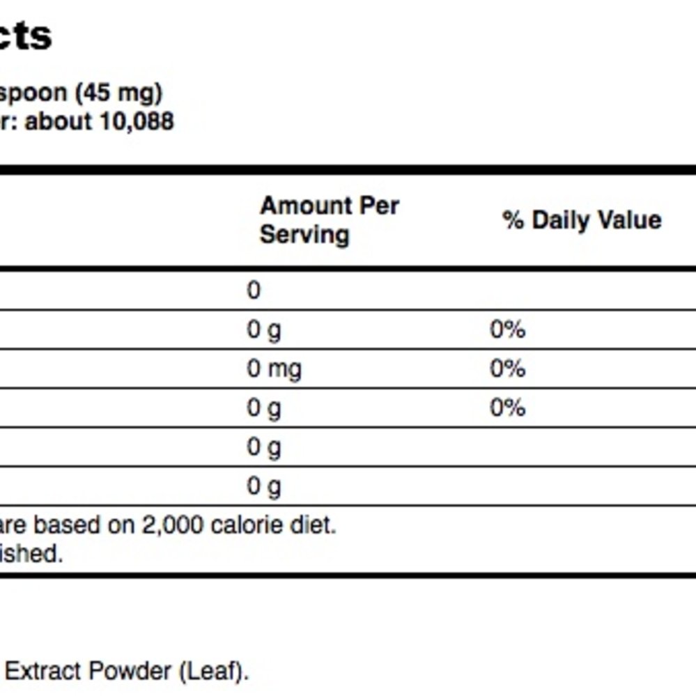 Ingredients: Organic Steviol Glycosides (Stevia rebaudiana) (Leaf) Extract Powder.